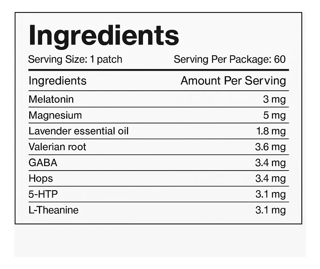 Son pegatinas transdérmicas que liberan lentamente una fórmula natural de melatonina y extractos botánicos directamente en tu piel, ayudando a regular tu ciclo de sueño sin necesidad de pastillas ni químicos agresivos.